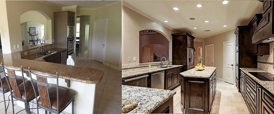 Kitchen, Added custom cabinets, new counter and a kitchen island