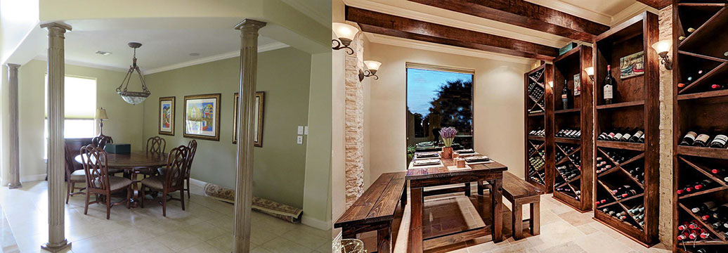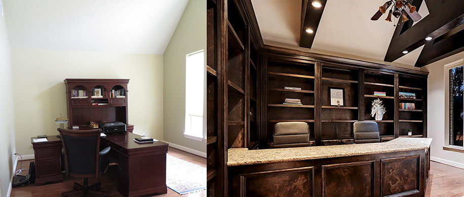 Study, Made custom cabinets and desk. New floors and ceiling fixtures